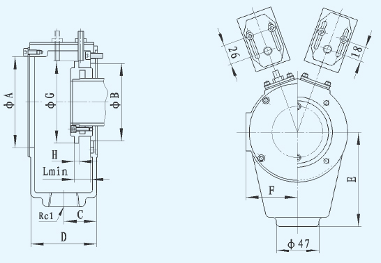 This component is used with P25、P23 cylinder, fitted at the end of the cylinder to collect cutting-water. A stroke control device may be equipped and its location should be adjusted according to stroke and the dog placed at the end of the piston.