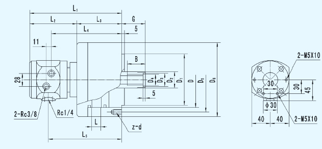 ☆不通孔高速回轉(zhuǎn)油缸。油缸采用優(yōu)質(zhì)鋁合金材料,體積小,重量輕,轉(zhuǎn)速高,密封性好。