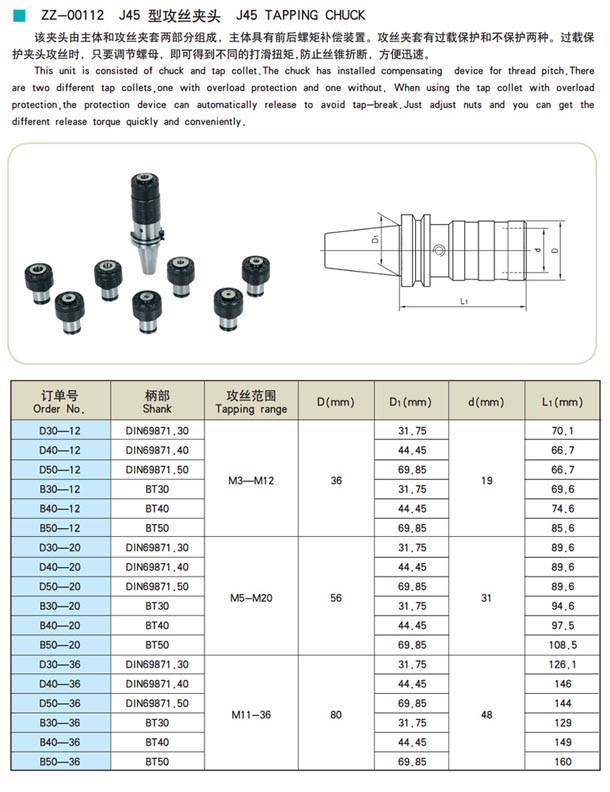 ZZ-00112-J45型攻絲夾頭