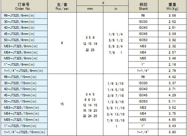 ZZ-00086-J7325-系列套裝銑夾頭-J7325-MILLING-CHUCK-SET