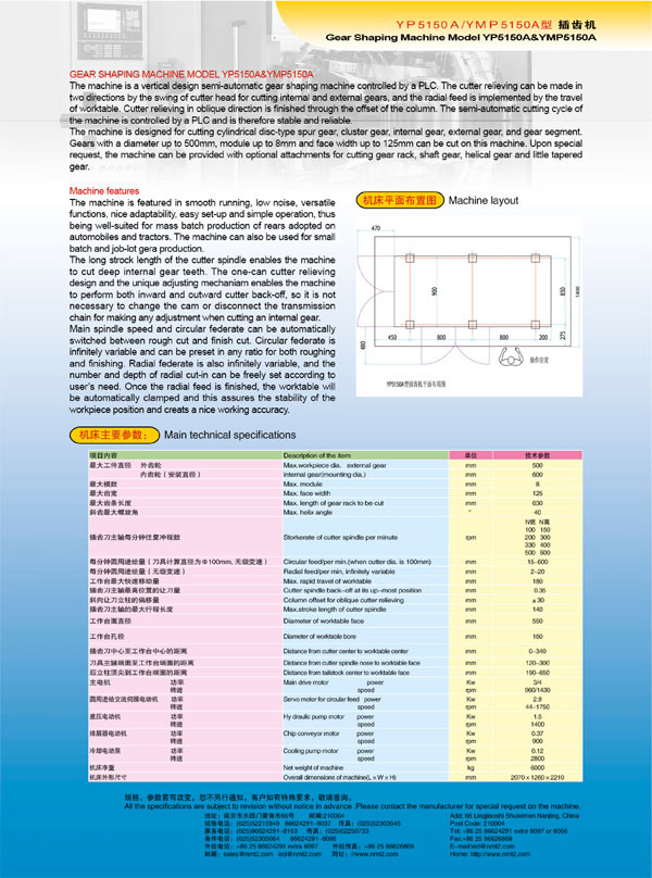 YP5150A插齒機