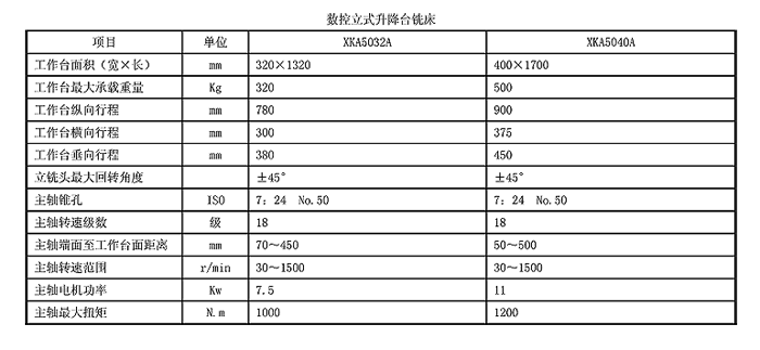XKA50系列數(shù)控立式升降臺銑床是一種使用范圍很廣的銑床,可配備FANUC 0i-MD、SIEMENS 828D、華中818B和廣數(shù)983M數(shù)控系統(tǒng),可以完成直線、斜線、曲線輪廓等銑削加工;可以組成各種往復循環(huán)和框式循環(huán)還可以銑削具有復雜曲面輪廓的零件,如模具、螺旋槽、葉片、凸輪、樣板等;適用于機械制造行業(yè)的各類部門,也適用于軍工部門。并可根據(jù)用戶要求提供第四坐標,從而實現(xiàn)四軸四聯(lián)動功能,可以實現(xiàn)在圓柱面、圓錐面等上面加工各種曲線、曲面。 結(jié)構(gòu)特點: 機床主傳動為交流電機驅(qū)動,18級齒輪變速;三軸進給系統(tǒng)為交流伺服電機驅(qū)動;主軸錐孔為(ISO)No.50錐孔,可安裝標準的銑刀或銑夾頭;主軸的軸向位置可調(diào)整,連同套筒一起作軸向伸出;主軸也可以連同銑頭主體一起,在左右各45°范圍內(nèi)調(diào)整成傾斜位置;銑頭的上方裝有半自動的裝卸刀機構(gòu),通過兩個按鈕分別控制裝刀和卸刀;機床采用側(cè)掛式電柜和吊掛式操縱站,機電一體,整體裝運,安裝方便,集中操縱但又能多位置操作。