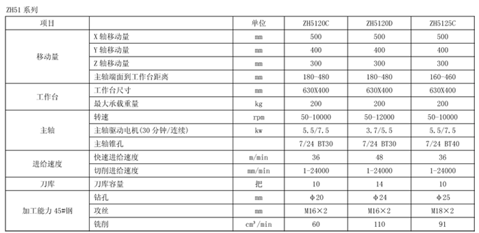 ZH51系列立式鉆削加工中心是在批量生產(chǎn)加工中心的基礎(chǔ)上, 通過(guò)對(duì)原有ZH立式鉆削加工中心進(jìn)行改進(jìn)發(fā)展的一種全功能型鉆削加工中心, 其最大特點(diǎn)是換刀速度快、主軸轉(zhuǎn)速高、三軸快速移動(dòng)快, 從而實(shí)現(xiàn)了快速切削, 提高了加工效率。具有高速鉆削、銑削、鏜削、剛性攻絲功能。適合于航天航空、汽車(chē)機(jī)車(chē)、儀器儀表、輕工輕紡、電子電器、小型模具等各種機(jī)械制造業(yè), 可用于中小批量,多品種生產(chǎn), 更適合于連機(jī)組成加工制造線進(jìn)行大批量生產(chǎn)。